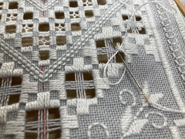 1つアップでお載せしますが一筆では刺し終わらない複雑なステッチの数々です。