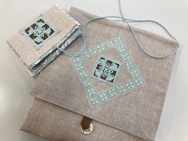 三越クラス、たまがわクラスにお通いのSさんはこのページからも何度かお伝えしていますがレティチェッロしか刺しません。今年私のところでとても多くの方がお作りになった刺繍枠入れ。これを「せんせ、レティで作りたいヮ」とグリーンの糸でお作りになられました。そしておそろいで夏のワークショップのソーイングセットも。窓の大きさやステッチはご本人思いのまま。刺繍時間のそばにこんなセットがあれば心も上がりますね。