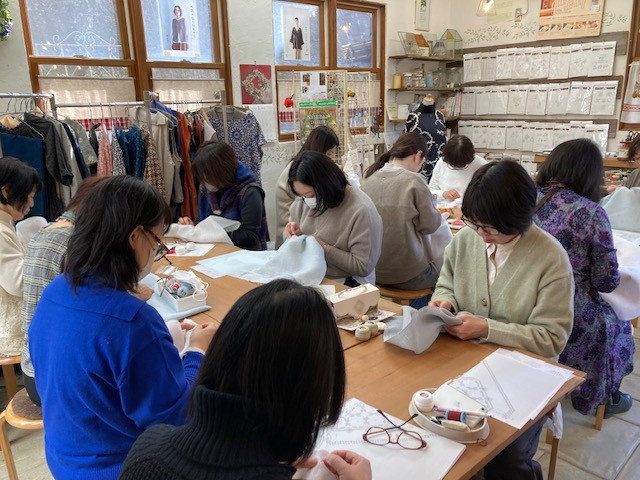 オンライン講座とお正月の振り替えで1か月遅れの港北カルチャーAクラスを除き今年も全クラスが動き出しました。ご依頼の材料のほとんどを皆様のお手元に届けることができました。中でも受講の方全員が同じものを作成する鎌倉教室はなるべくご希望のお色で刺して欲しいため一人一人の生地色糸色のチェックを何度も繰り返しの準備でしたので全員にお渡しでき安堵しております。今年の作品は『Alfee』と名付けましたが先ずはしつけから入り中央付近のサテンステッチから。う~んワクワクする!と新しい生地に取り組むお仲間たちのなんと頼もしいこと。皆さま今年も1年どうぞよろしくお願いいたします。